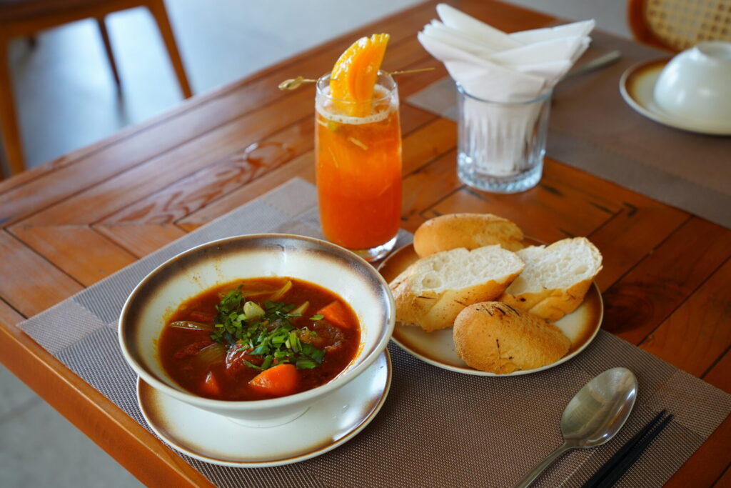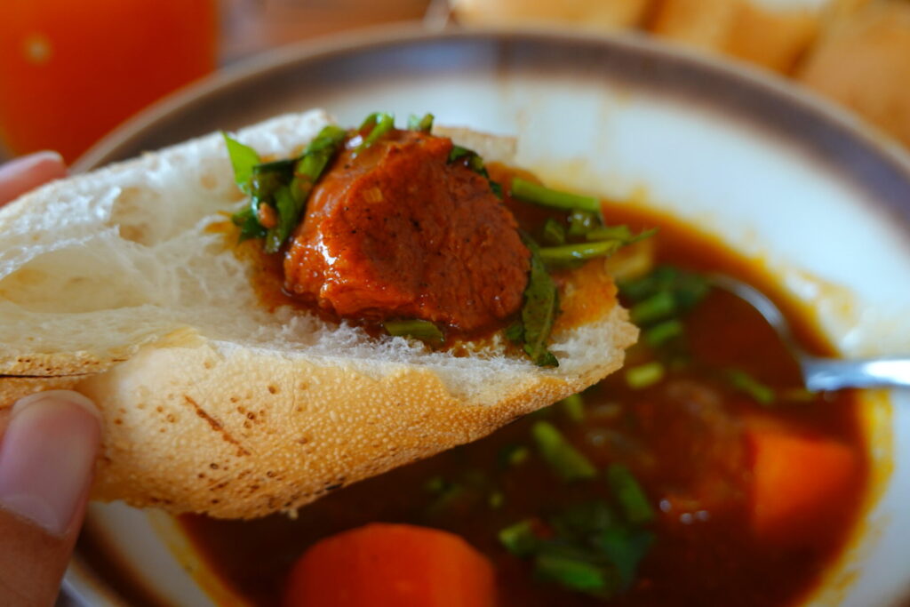 じっくりと煮込まれた牛肉は柔らかく、添えられたバインミーをシチューに浸して食べれば、至福のブランチに。