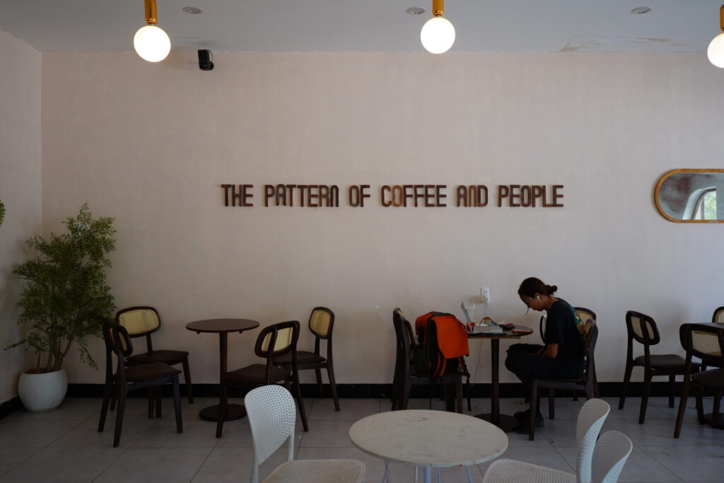 一歩足を踏み入れると、ミニマリズムとレトロが融合した空間。店内は奥行きのある細長い造りで、ベージュを基調とした壁面と温かみのある間接照明が、心地よい安らぎを与えてくれます。ホーチミンにあってもおかしくないようなカフェ。