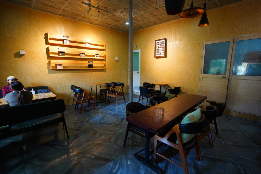 内装は外観のビビッドな印象とは異なり、落ち着いた素朴な空間。映えたいけど映えきれない、どこかおぼこい感じの残った雰囲気が愛おしい。