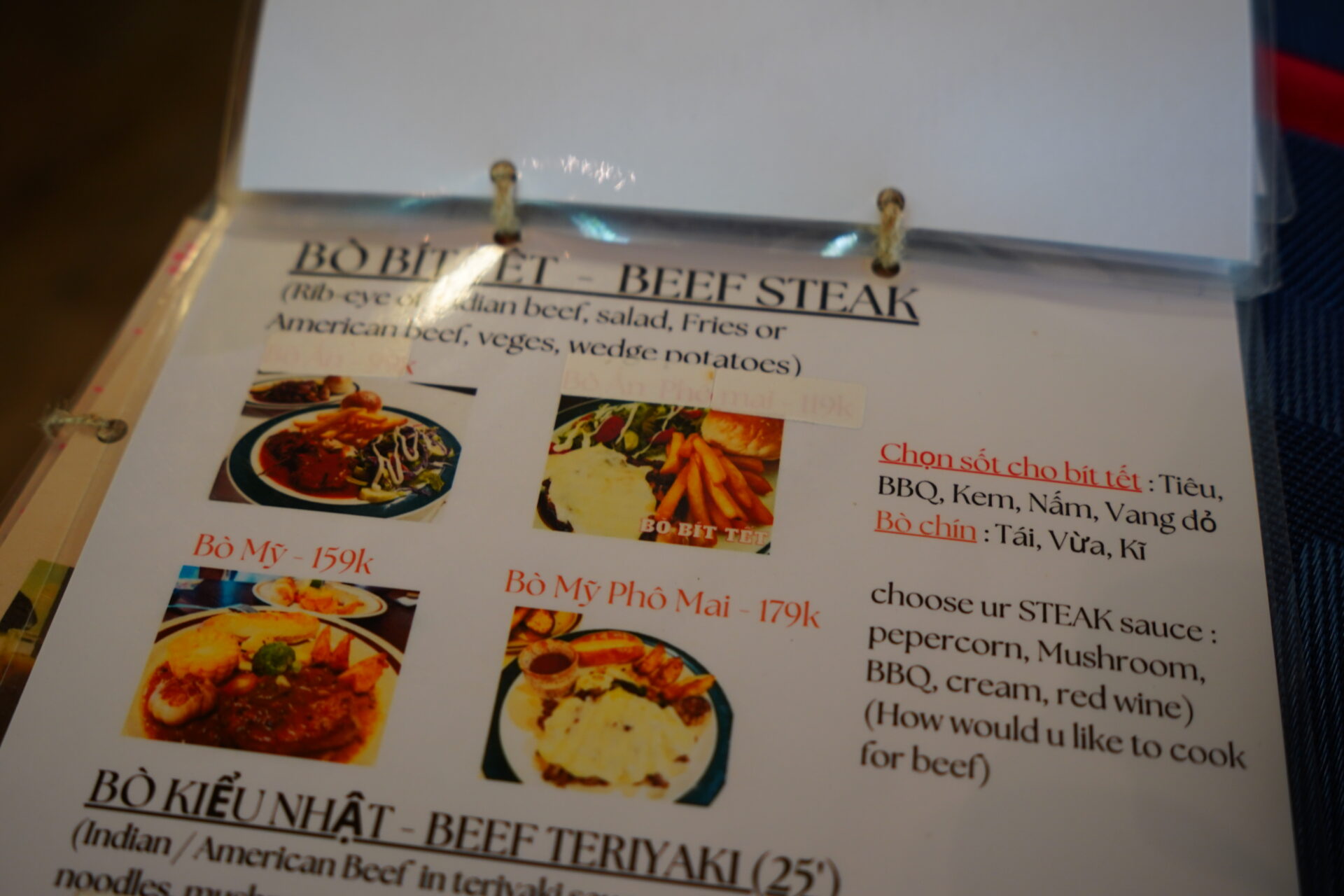 控えめに記されたSince 2012という文字からは、10年以上にわたってこの地で営業を続けてきた自負が伝わってきます(10年そこらとか大したことないじゃん!?と感じる方もいるかもしれませんが、店の入れ替わりが激しいベトナムにおいては十分に老舗と言って良いでしょう)。