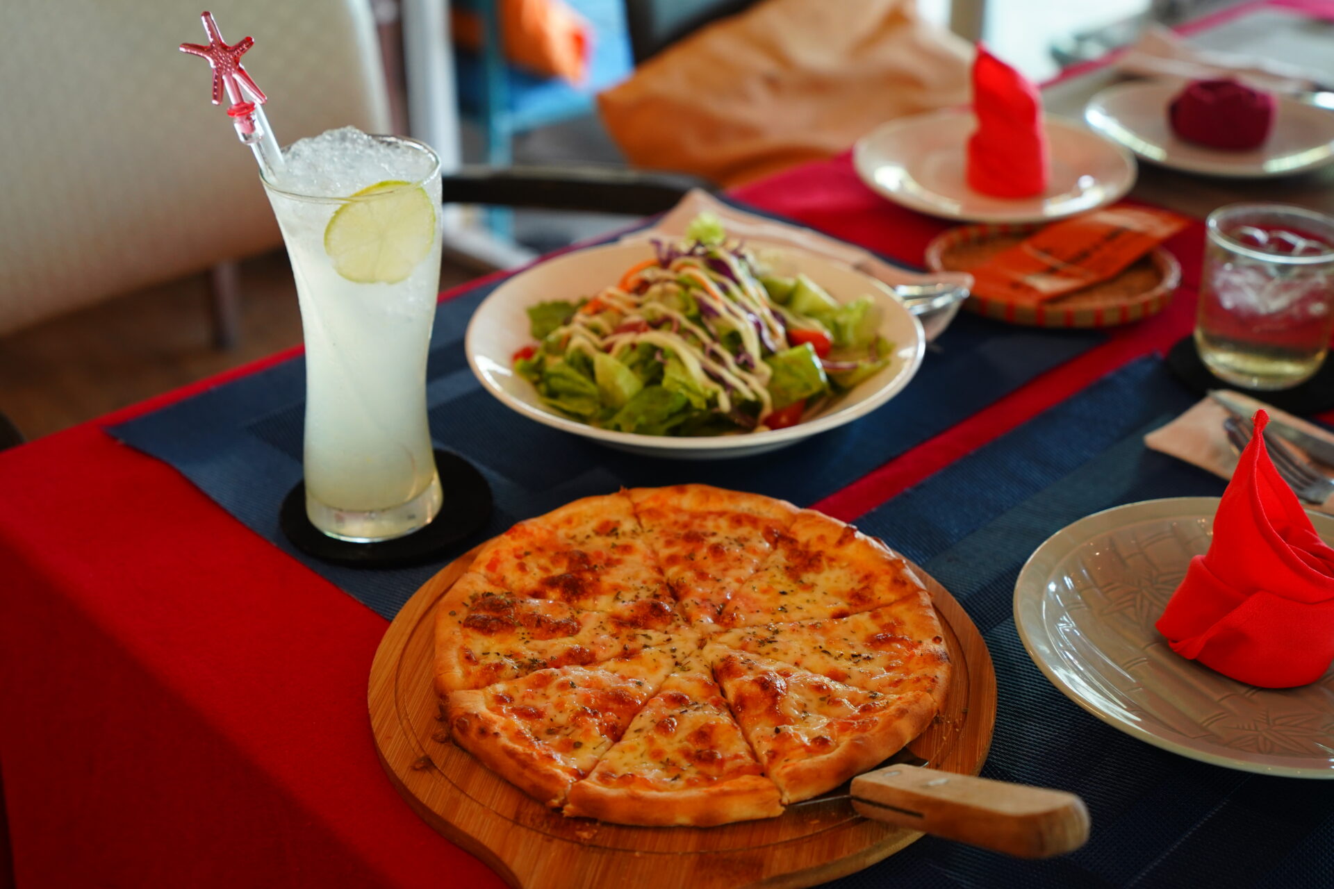 メニューの選択肢は豊富。ピザやパスタといったイタリアンに加えて、ハンバーガーやビーフステーキまで網羅。