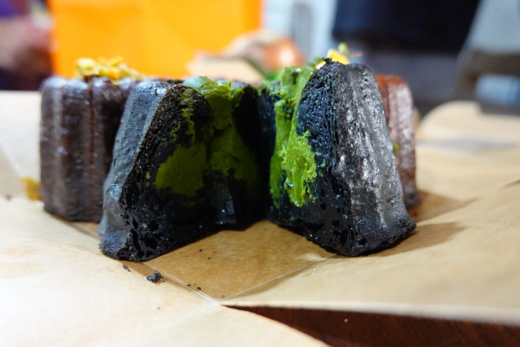 - Matcha:炭を練り込んだ漆黒の生地の中に、テリーヌのように濃厚な抹茶クリームが詰まっており、大人な苦味が楽しめます。