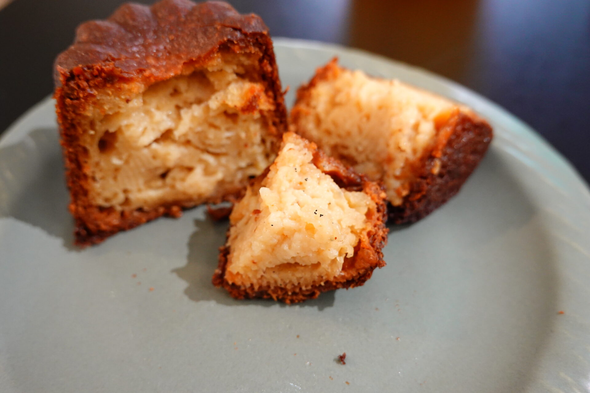 外を焼けば中が乾き、中を瑞々しく残せば外がフニャっとしてしまいがちであり、今まで食べたカヌレはそのどちらかに寄っていることが多かった。しかしながら、こちらのカヌレ、その相反する食感が絶妙なバランスで保たれている。