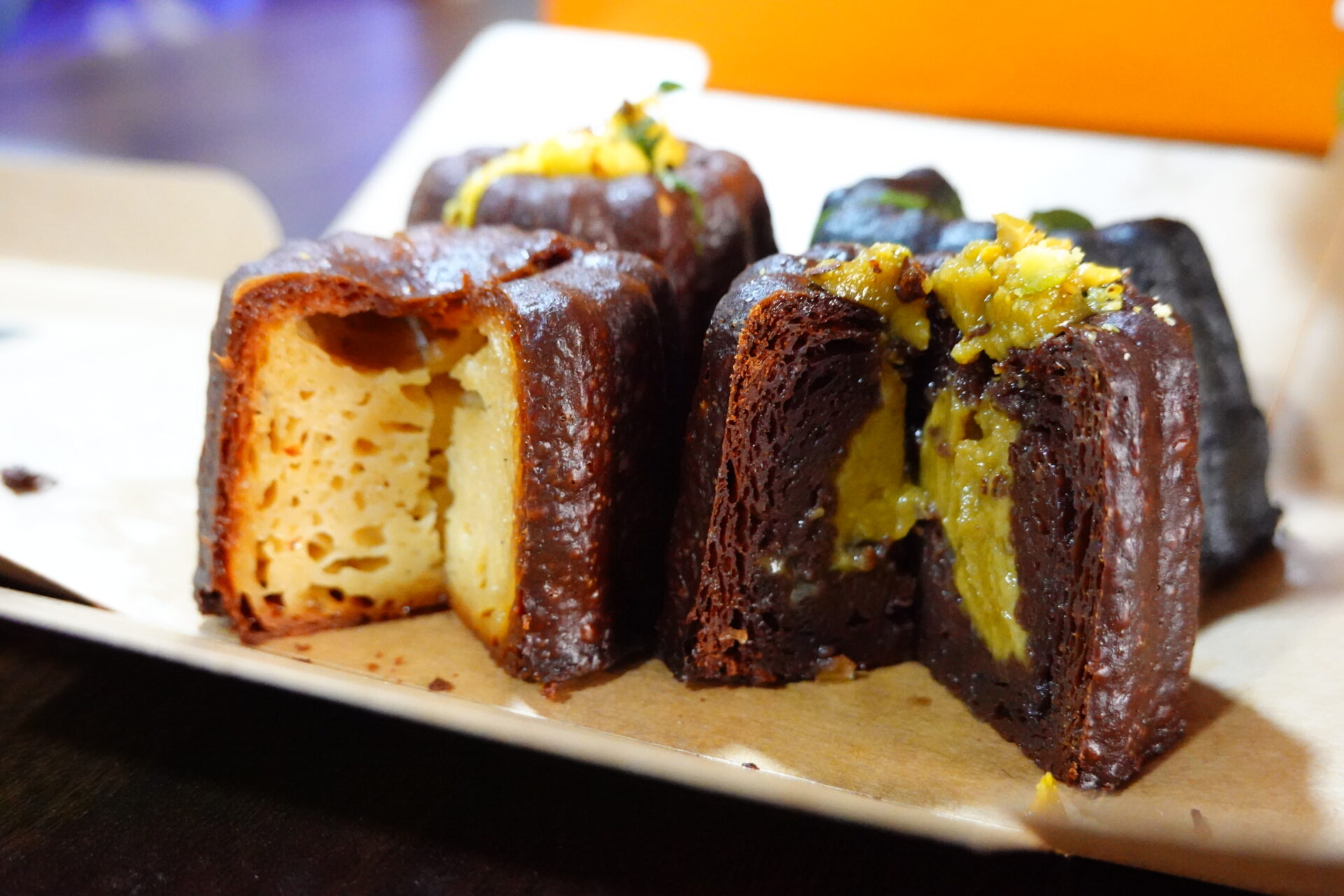 - Mango:フルーティーな酸味が効いたマンゴーカスタードが、カヌレの香ばしさを爽やかに引き立ててくれます。