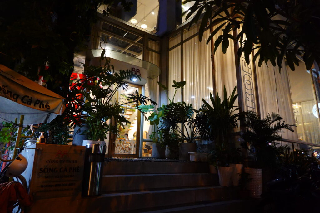 ガラス張りのモダンなファサードが印象的なこちらが「Sống Cà Phê」。