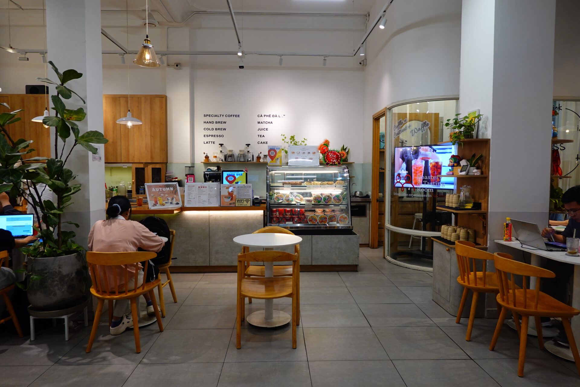 ガラス張りのモダンなファサードが印象的なこちらが「Sống Cà Phê」。