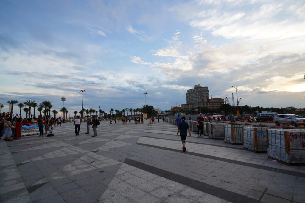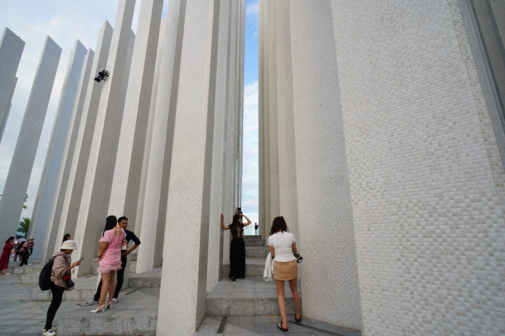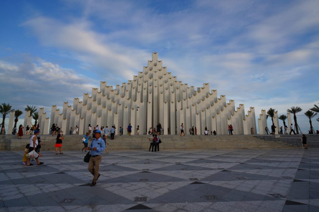 タムタンタワーがあるのは、ブンタウで最も賑やかな「バックビーチ (Bãi Sau)」の目の前。ビーチ沿いの公園に突如として現れる、無数の白い柱の集合体。それがタムタンタワーです。