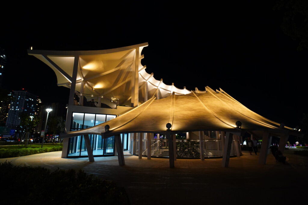 「タムタン」とは「三つの勝利」を意味し、19世紀にこの地を開拓した3つの村の名前に由来しています。タワーのデザインは、その歴史を背景に「大海原へと乗り出す3隻の船」がモチーフ。海に向かって高くなるように配置された大小143本の柱が、未来へ向かうブンタウの力強い姿を象徴しているかのよう。