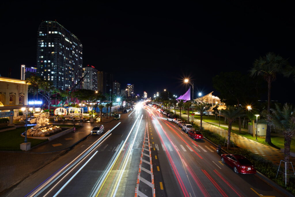 インペリアルホテル前の歩道橋から露光撮影。