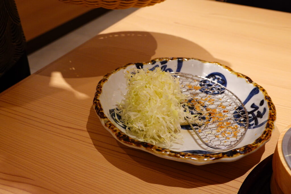 日本と同じく極細の千切りで、ふわふわの食感。卓上にはごまドレッシングとゆずドレッシングの2種類が用意されているのですが、特にゆずドレッシングが良すぎたのだった。