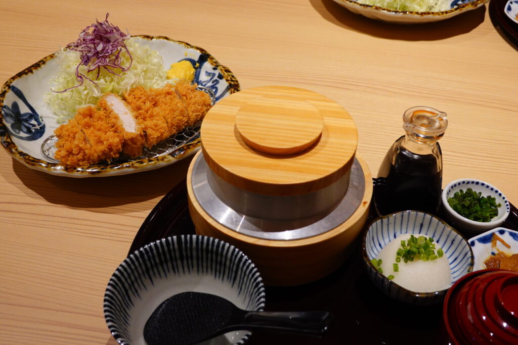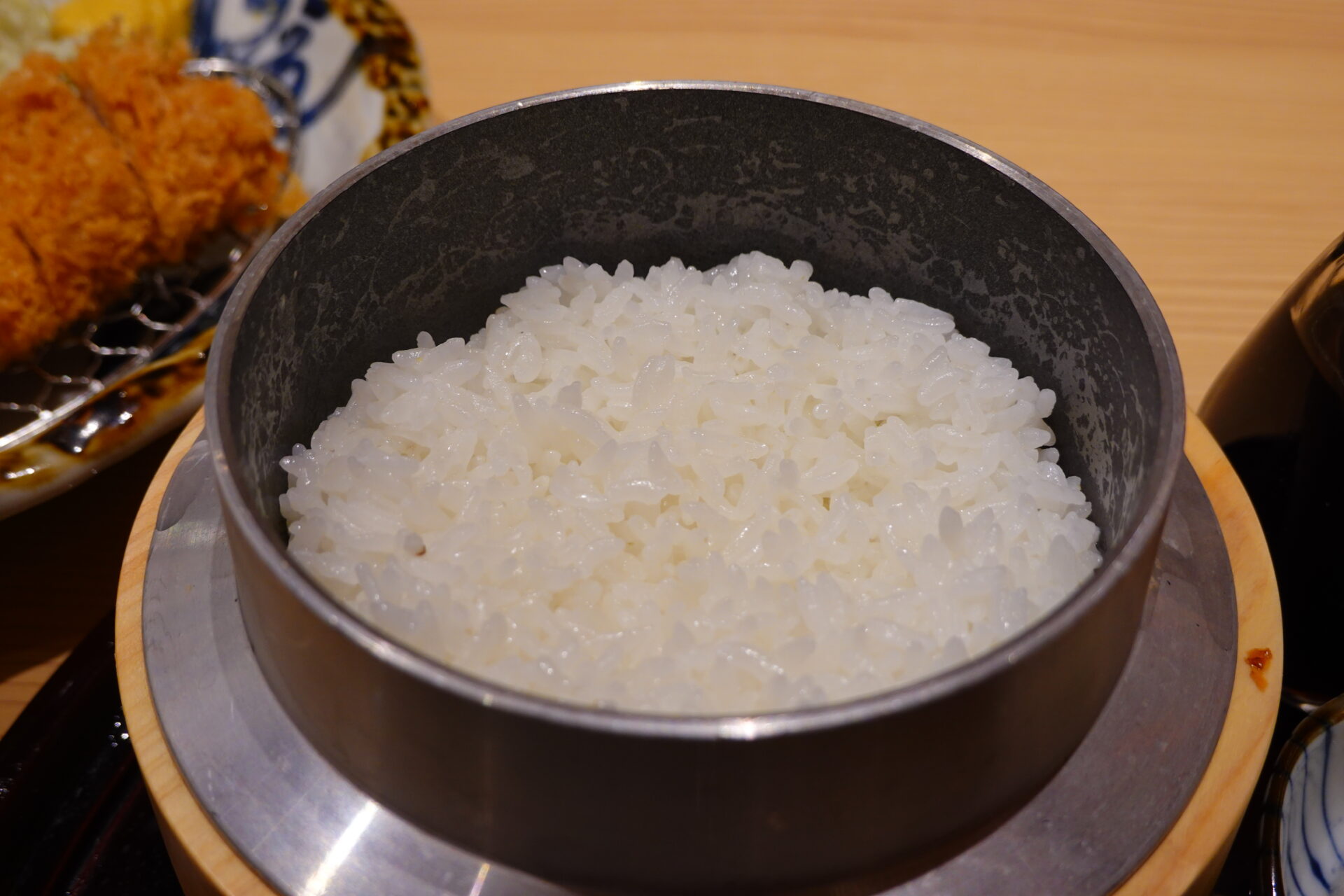 釜炊きご飯は大体お椀2杯分くらい。とんかつを始め、どのおかずもご飯泥棒なので「これはおかわり行けちゃうのでは…」と錯覚しますが、ゆっくり味わって食べていると何だかんだで満腹に。これはおかわりしなくても十分満足できる量だな…。