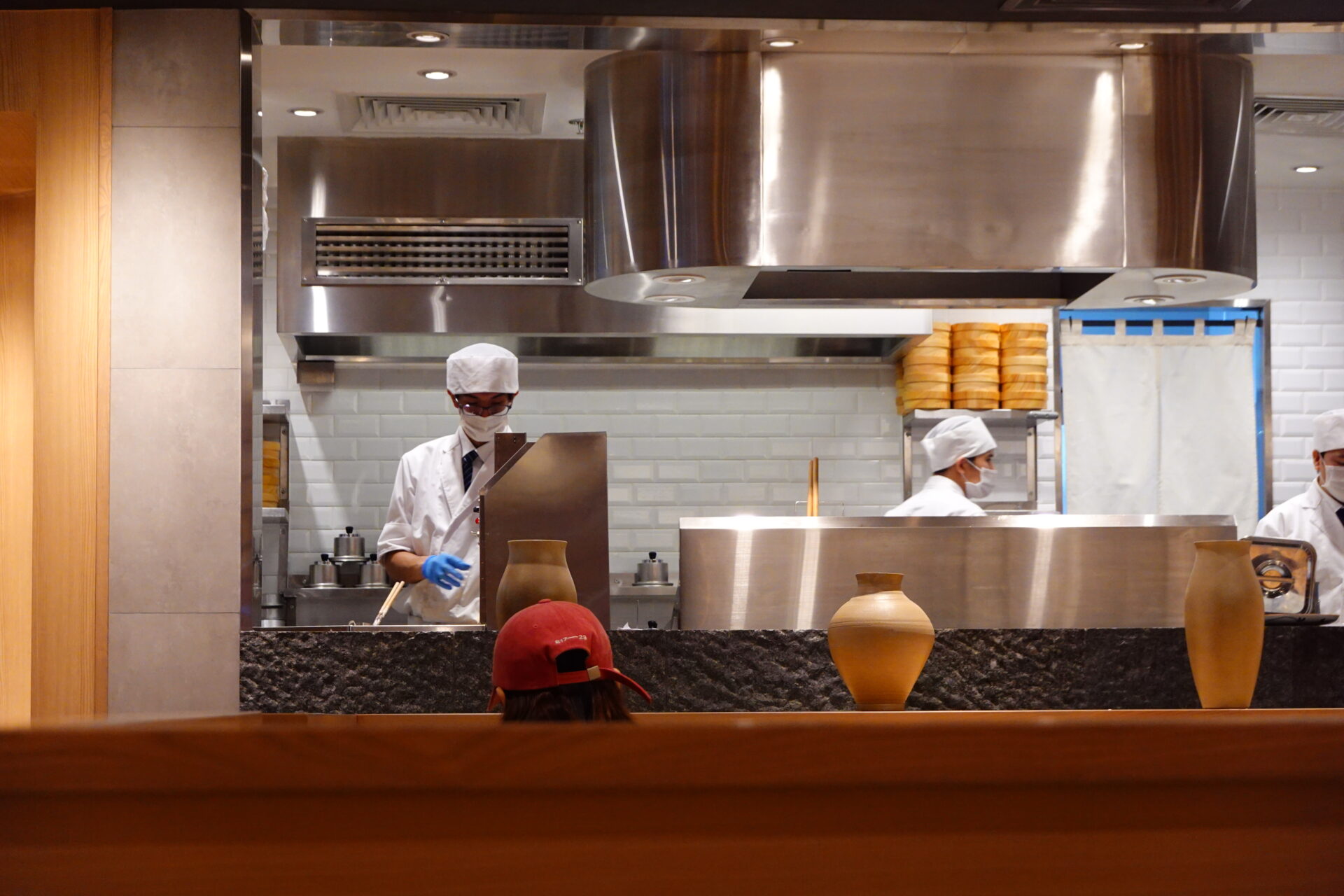 お店の奥にはガラス張りのオープンキッチン。おそらく日本人がキッチンを取り仕切っておられるのだと思います。ホールの店員さんは基本的に英語をお話しになりますが、人によっては日本語も解されるのかな、と。