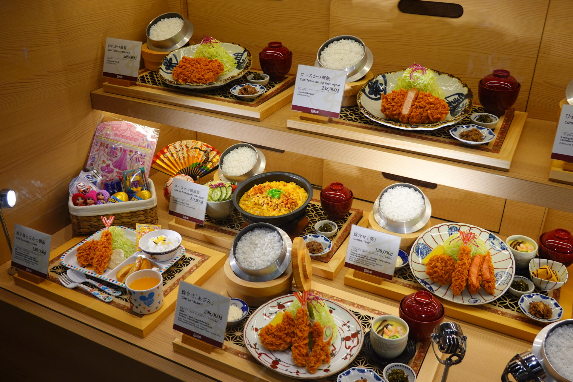 そして、我々(同僚さんと行きました)の視線を釘付けにしたのが、巨大なショーケースに並ぶ食品サンプルたち。この精巧なサンプル、日本のまんまやん…。