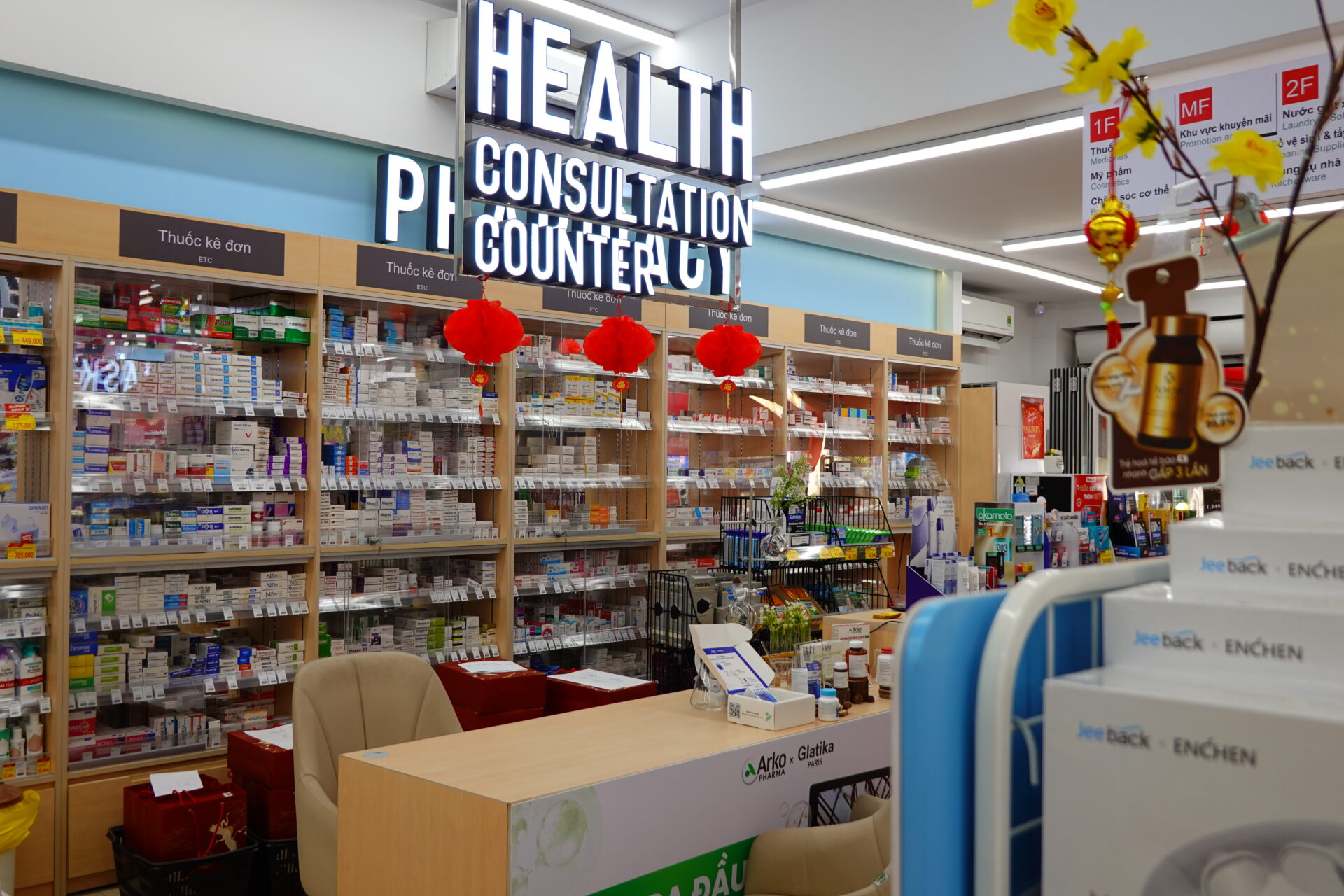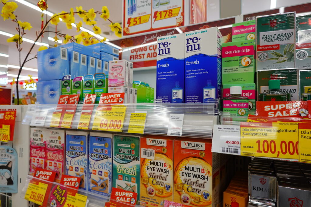 ツルハの特徴は、調剤カウンター(PHARMACYコーナー)を備えること。そもそも、前述のマツキヨしかり香港発の「Watsons(屈臣氏)」しかり、外資系ドラッグストアはベトナム進出にあたって医薬品を取り扱わないことが多いです。