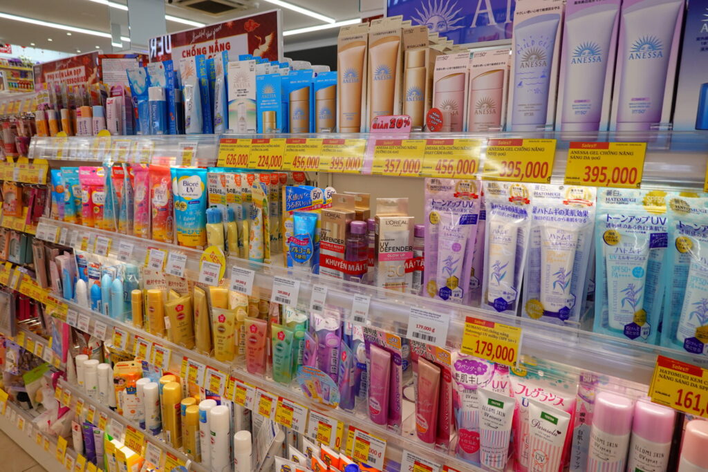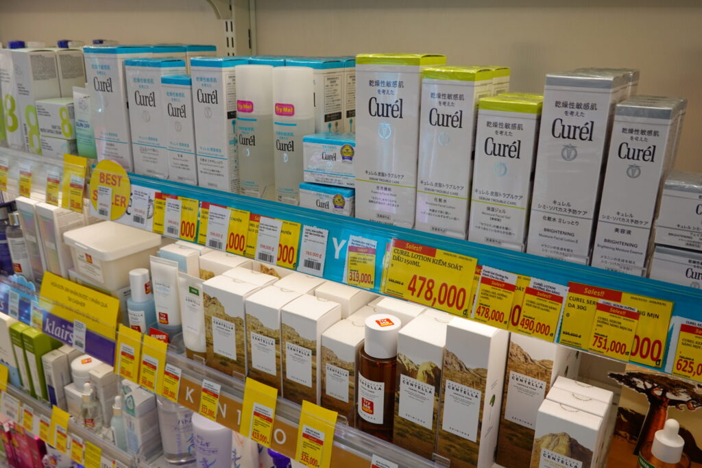 「専科(SENKA)」の洗顔料、敏感肌用の「キュレル(Curel)」、日焼け止めの「アネッサ(ANESSA)」など。当然ながら日本ブランド品が充実。