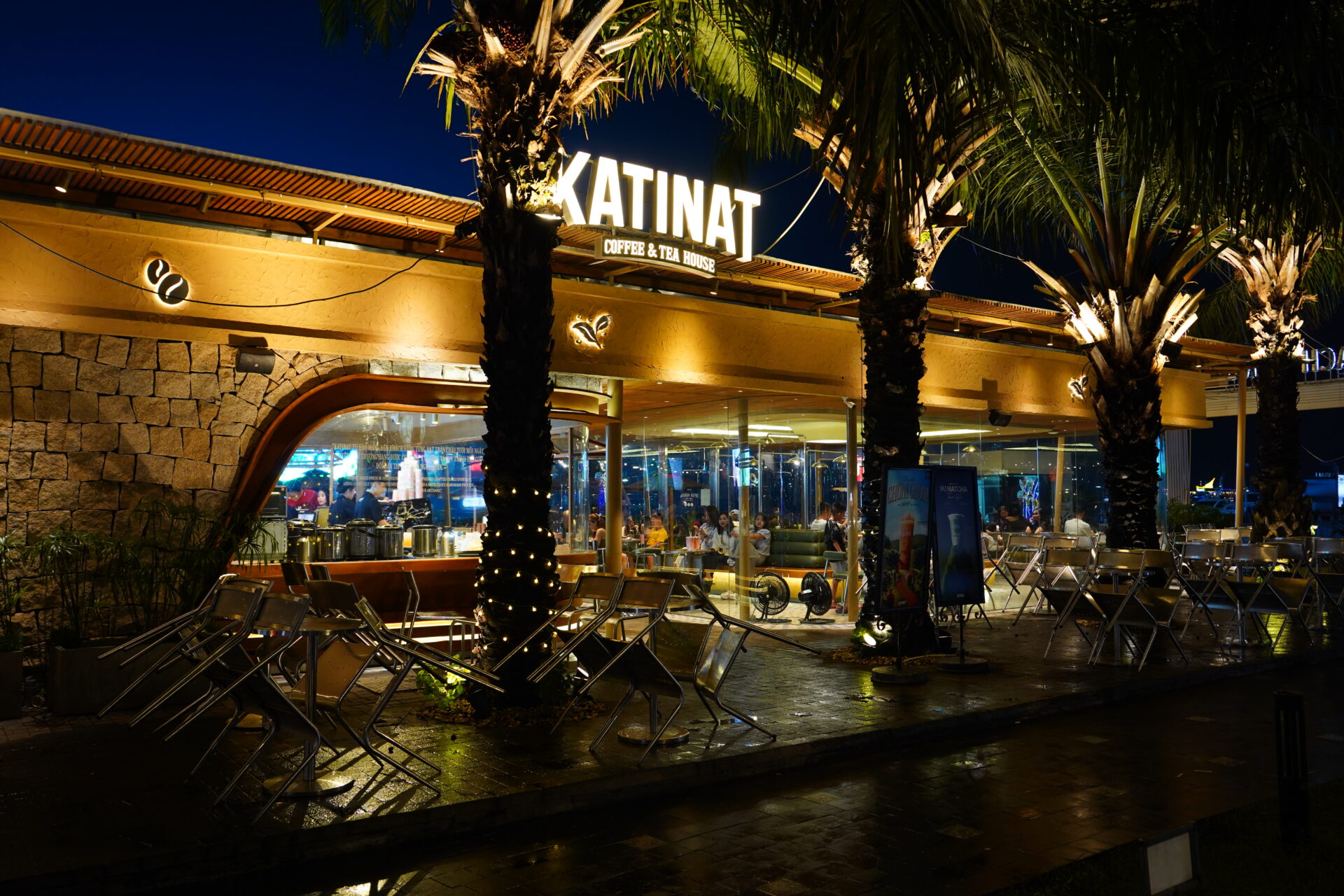 「Katinat」の最大の戦略は、ランドマーク戦略と呼ばれるもの。人通りの多い主要な交差点や、街の視認性が極めて高い角地を狙って出店し、夜間には華やかなネオンや照明で圧倒的な存在感を放ちます。