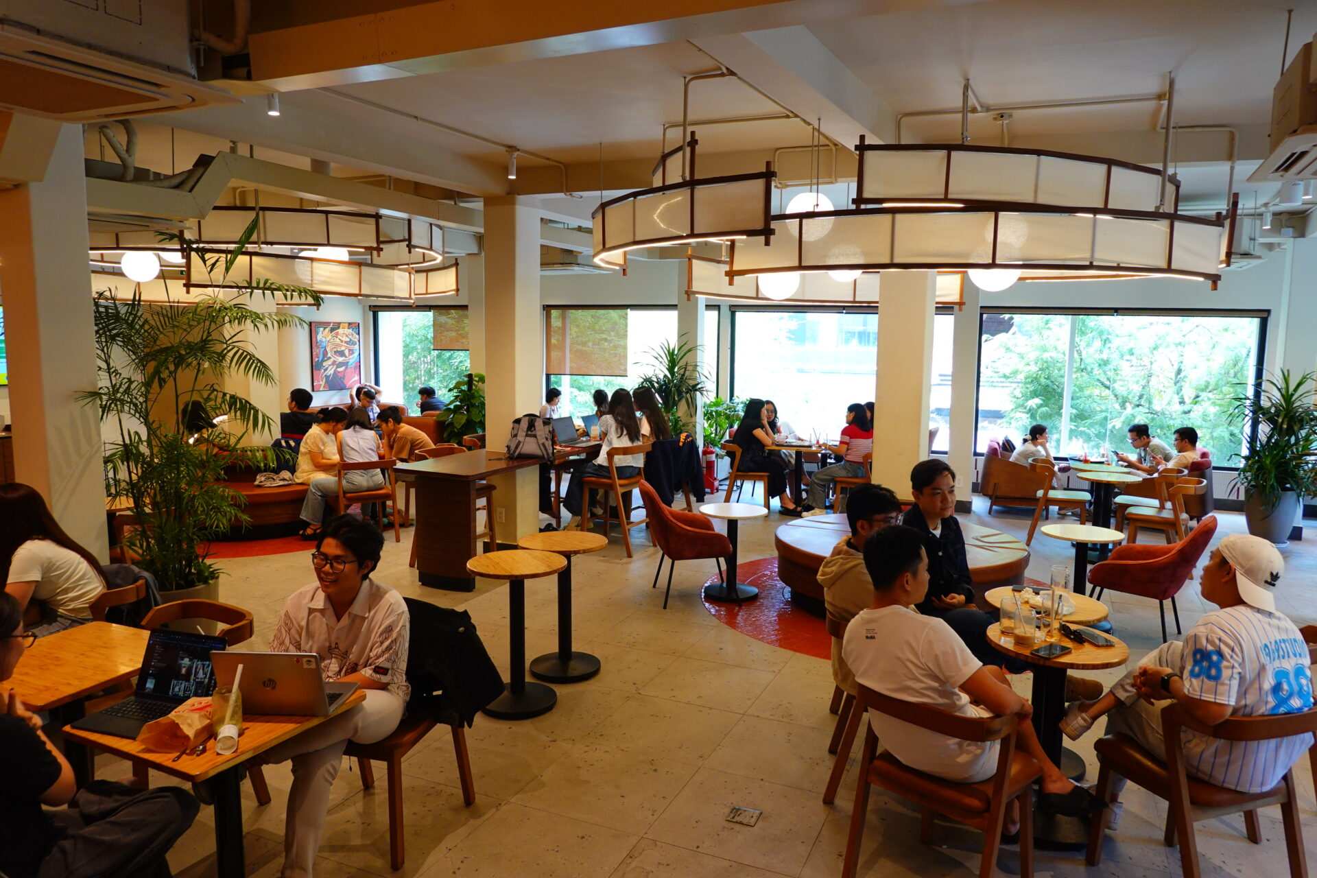客層は多岐に及び、店内はベトナムらしい活気に溢れています。オフィスワーカーの打ち合わせから学生の勉強、大人数の家族連れまで…。なんで、まあ、店舗や時間帯によっては結構騒がしいこともあります。