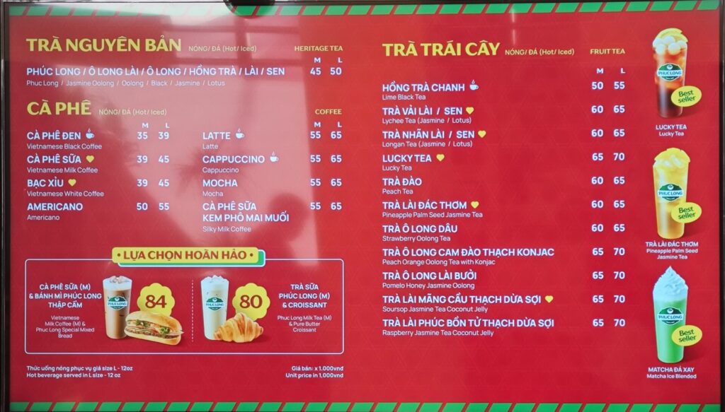 「Phúc Long Coffee & Tea」のメニュー