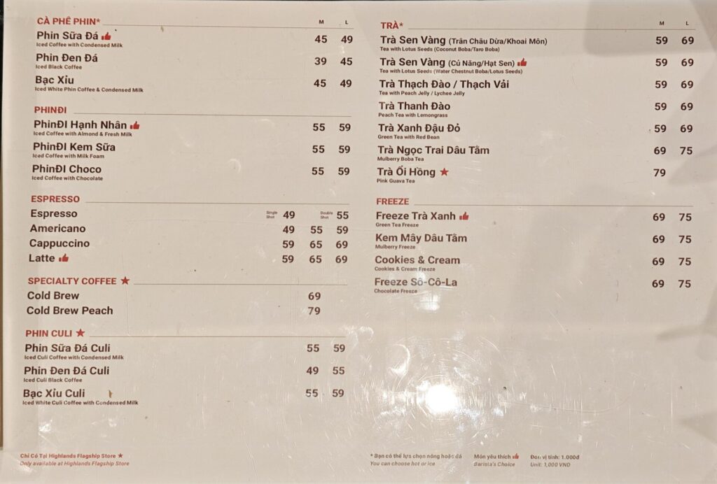 「Highlands Coffee」のメニュー