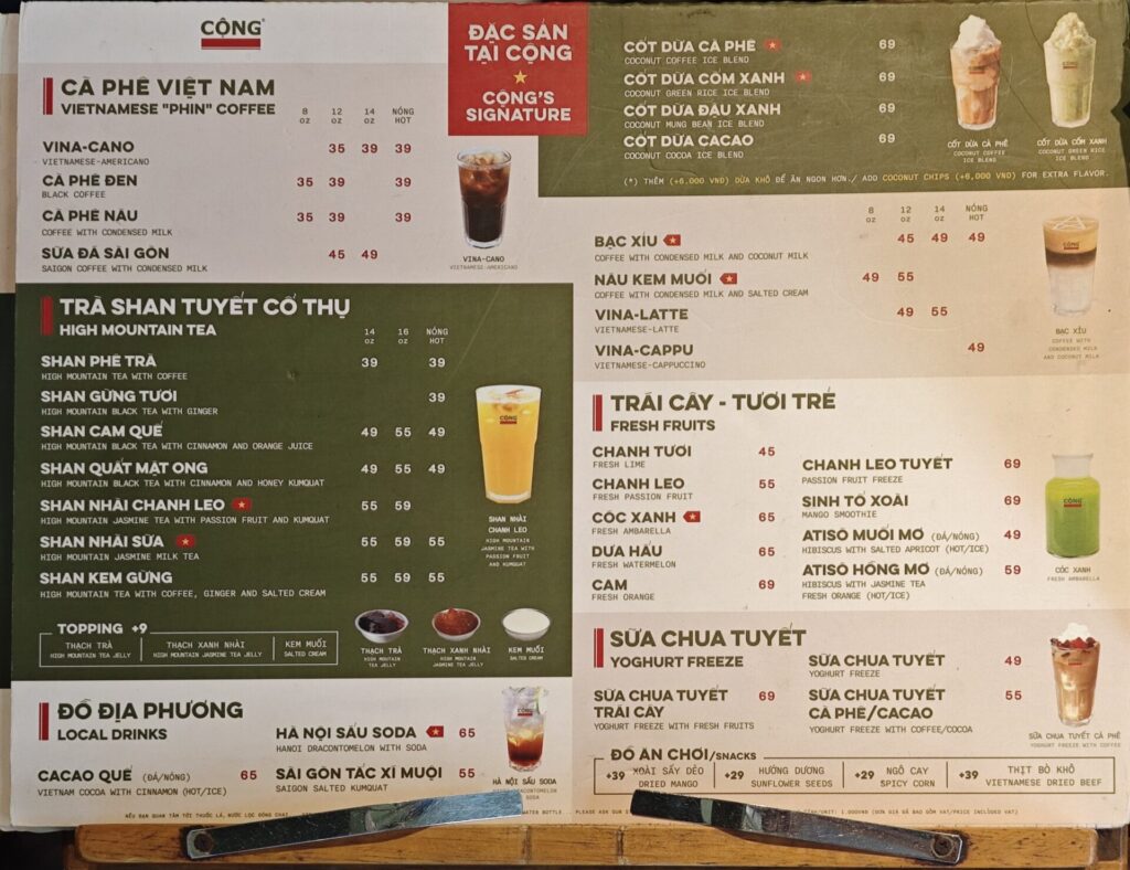 「Cộng Cà Phê」のメニュー