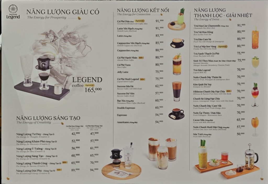 「Trung Nguyên Legend」のメニュー