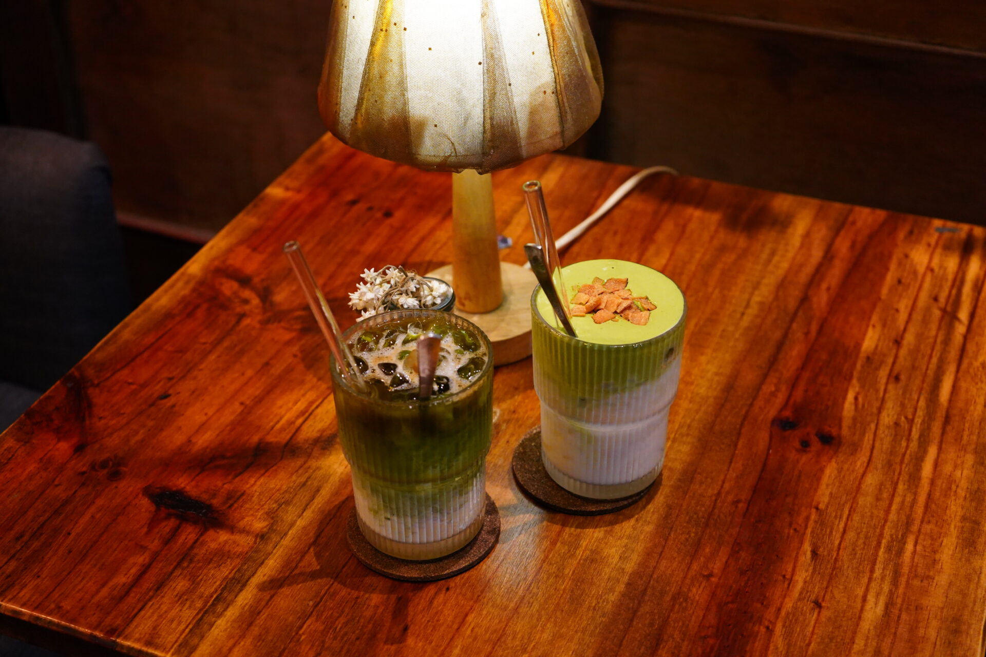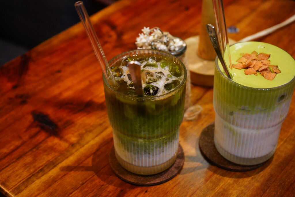 MATCHA COFFEE LATTE75,000ドン)」と、友人が注文した「MATCHA COCONUTE69,000ドン)」。