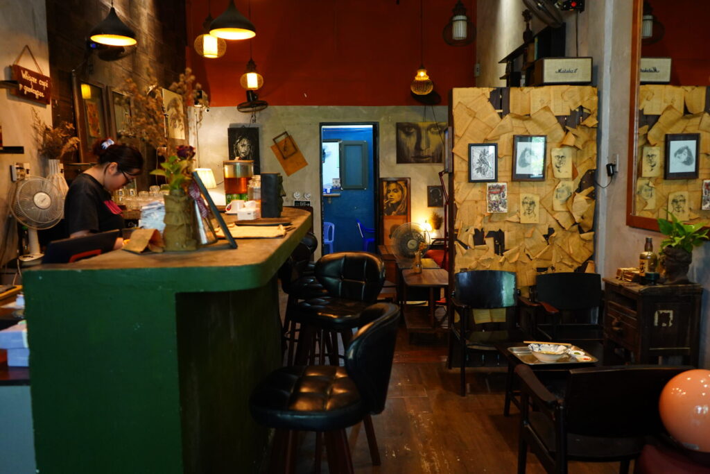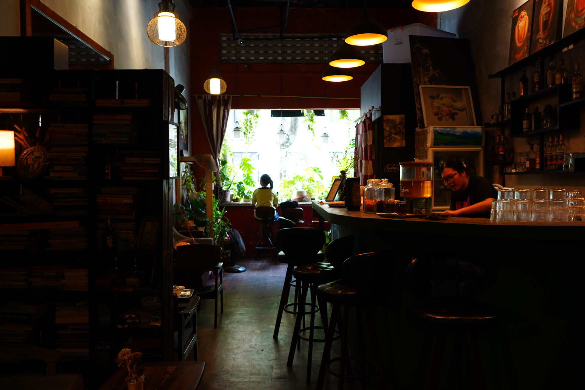 昼下がりには濃いベトナムコーヒーを、日が暮れたら琥珀色のウィスキーを―青い闇に包まれた空間には、街なかの喧騒が嘘のような、ムーディーな時間が流れていたのだった。