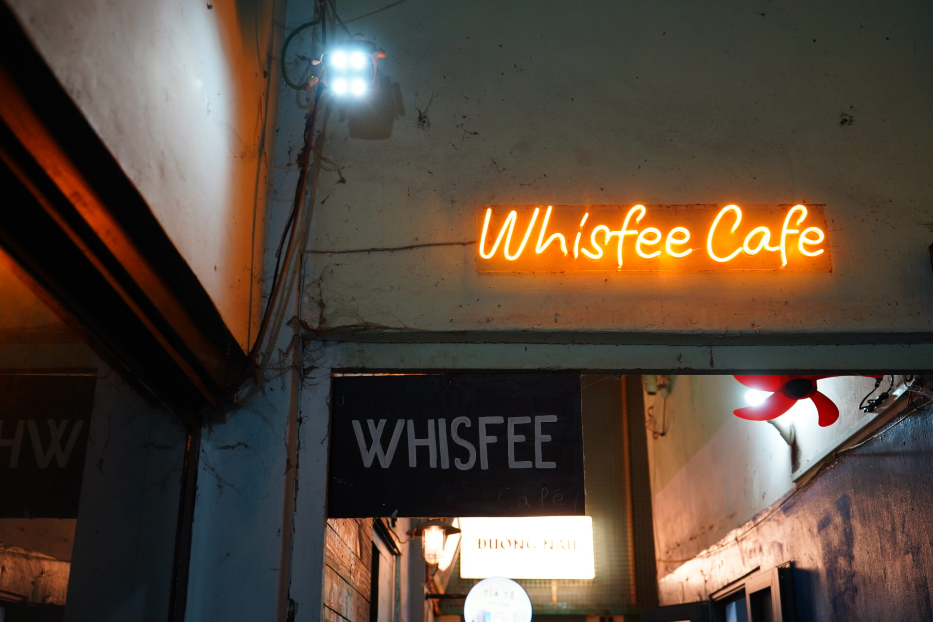 まあ、これは「Whisfee Café」の向かいのお店の塗装なのだけど、昼間でも少し落とされた照明と相まって、そこはまるで深夜の路地裏のよう。知る人ぞ知る「Speakeasy」―隠れ家バーのようなオトナの気配が漂っていますよ。